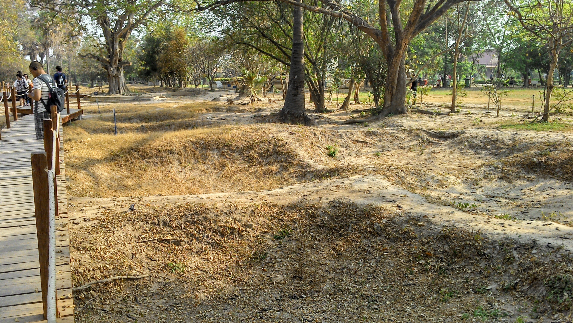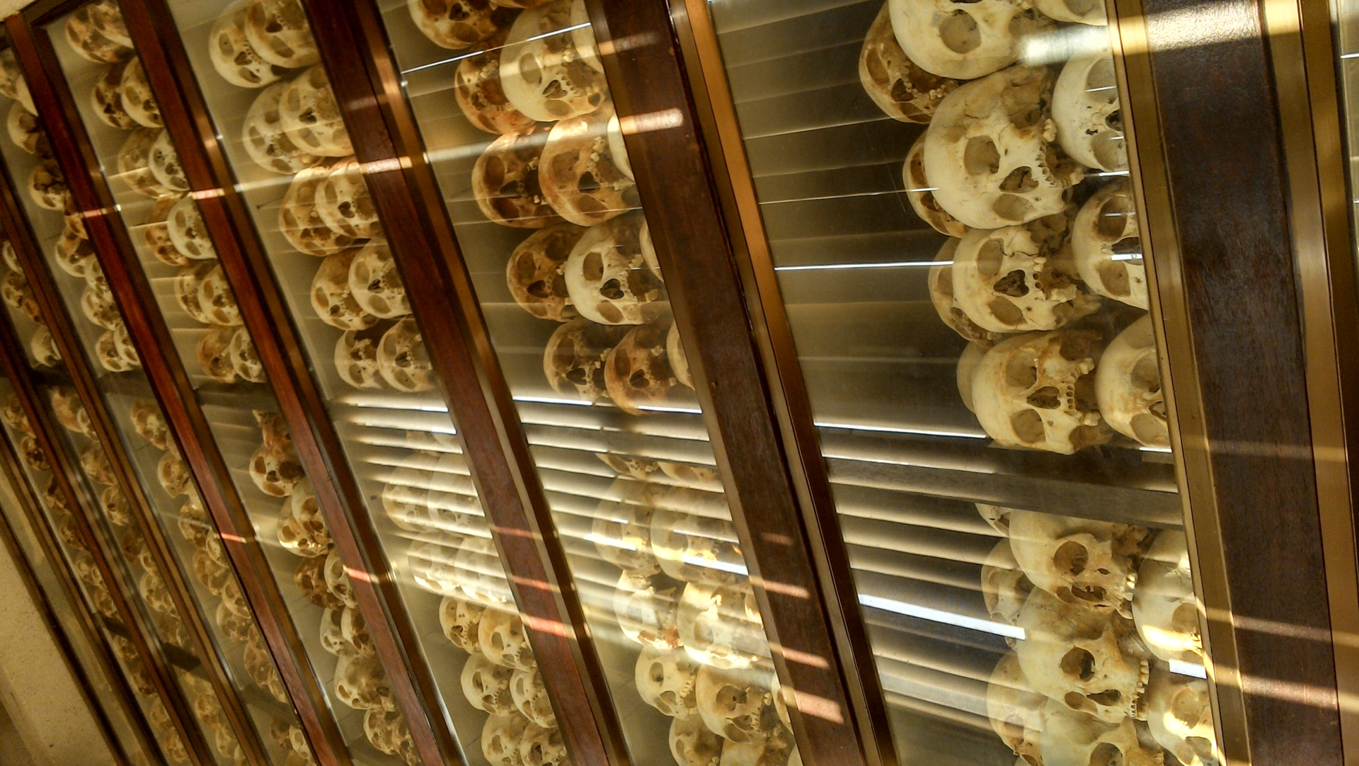 Der Vietnamkrieg wütete nicht nur im Land selber, auch die Nachbarstaaten Laos und Kambodscha wurden bombardiert, da die Nachschubwege der Vietcong sie durchkreuzten. Darunter zu leiden hatte vor allem jedoch die Zivilbevölkerung. Dies und die hohe Armut begünstigte die Machtergreifung Pol Pots und der seiner Roten Khmer. Wir haben uns heute mit dem dunkelsten Kapitel seiner Herrschaft beschäftigt. Bevor ich jedoch zu unseren Eindrücken komme, ist noch ein wenig Hintergrundwissen nötig. Pol Pot hat die Vision eines Kommunistischen Bauernstaates. Er ließ Geld verbieten und alle Schulen und Tempel schließen. Schon drei Tage nach der Machtübernahme war die Hauptstadt Phnom Penh eine Geisterstadt, da alle Menschen auf das Land deportiert worden und dort zur Landarbeit in Kollektiven gezwungen wurden. Überarbeitung und Hunger dezimieren die Menschen, am schlimmsten waren wohl jedoch die Intellektuellen dran. Dazu zählen neben Ärzten, Journalisten und Lehrern aber auch Menschen, die eine Fremdsprache beherrschten, eine Brille trugen oder "weiche Hände" hatten. Viele von ihnen kamen nach Tuol Sleng, unserer ersten Station. Das Gesehene war für uns teilweise schwer zu verkraften, aber dennoch wollen wir darüber schreiben, weil nur das Wissen darüber solche Grausamkeiten in Zukunft verhindern kann. Wenn euch so etwas sehr nahe geht, überspringt die nächsten drei Absätze und vor allem die Bilder. Die Schule im Herzen der Stadt wurde von den Roten Khmer als Gefängnis genutzt. Wie die Nazis führten sie peinlich genaue Aufzeichnungen über alle Gefangenen. Alle wurden fotografiert, teilweise bevor und nachdem sie gefoltert wurden. Insgesamt über 17 000 Männer, Frauen und Kinder in nicht einmal vier Jahren Herrschaft. Als die vietnamesische Armee das Gefängnis 1979 erreicht, sind noch sieben der Insassen am Leben. In den meisten der Folterräume befindet sich nur das Bett von damals und ein Foto von einem Gefangenen an der Wand, wie er nach den Folterungen in unnatürlichen Positionen auf dem Bett liegt. Raum für Raum, jedes Mal ein neues Opfer, jedes Mal ein Blutbad unter dem Bett. Im Hof stehen Schilder, die erklären, wie der Spielplatz der ehemaligen Schule als Foltergerätschaften umgebaut wurde. In mehreren Räumen sind riesige Tafeln mit den Fotos der Insassen. Die leeren Blicke von tausenden Menschen lassen einen Schauer über den Rücken laufen. Im letzten Raum ist ein Panorama Foto. Zu sehen ist eine hügelige Sumpflandschaft, auf dem ganzen Boden liegen jedoch hunderte Knochen und Schädel verstreut. Aufgenommen wurde dieses schaurige Bild etwa ein halbe Fahrstunde von Phom Penh, in den sogenannten "Killing Fields", die wir als nächstes besuchen. Der Eingangsbereich wirkt zuerst wie ein Arbeitslager. In das vorderste Gebäude wurde die in Lastwagen mit verbundenen Augen angelieferten Gefangen gebracht. Die drei anderen Gebäude dienten zur Lagerung von Chemikalien, Gartenwerkzeug und als Administration. Denn auch hier wurde peinlich genau Buch darüber geführt, wie viele Menschen in Phnom Penh auf den Laster gestiegen sind und wie viele hier ihr Ende fanden. In zweiter Reihe sieht man dann eine Mondlandschaft aus Kuhlen. Über 120 Massengräber wurden hier gefunden. Da Kugeln zu wertvoll waren, wurden die Gefangenen mit verbundenen Augen an den Rand der bis zu fünf Meter tiefen Gruben geführt und dann mit Gartenwerkzeugen erschlagen: Schaufeln, Hacken oder nur Bambusstöcken. Um die Schreie zu überdecken, liefen aus einem Lautsprecher die ganze Nacht über revolutionäre Lieder; gegen den Gestank wurden die Chemikalien auf die Leichen verschüttet. Zumindest in der Anfangszeit bei ca. 50 Tötungen pro Nacht. Bei über 300 im letzten Jahr der Herrschaft der Roten Khmer blieb dafür keine Zeit mehr. Als 1979 vietnamesische Soldaten das Lager erreichten, bot sich ihnen ein noch abscheuliches Bild. Die verwesenden Leichen ließen die Gräber aufquellen und entließen einen eitrigen Geruch über das gesamte Gebiet. Doch auch heute noch werden jedes Jahr während der Regenzeit Knochen an die Oberfläche gespült. Einige liegen in einem Glaskasten, andere einfach achtlos obenauf. Ein Grab neben einem Baum leuchtet besonders durch die bunten Armbänder, die die Besucher als Andenken niedergelegt haben. In ihm wurden nur Frauen und Kleinkinder gefunden. Die Säuglinge wurden vor den Augen ihrer Mütter gegen den Baum geschlagen und dann in die Grube geworfen, bevor diese getötet wurden. Erst nach der Öffnung der Gräber wurde klar, warum der "Killing Tree" so mit Blut, Hirn und Haaren verkrustet war. Als Andenken an die vielen Opfer wurde im Zentrum des Gebietes eine Stupa errichtet, in der die Menschen ihre letzte Ruhe finden sollten. Obwohl nur die Schädel hier dicht an dicht liegen, ist dennoch kein Platz mehr und man hat sich entschlossen, das letzte Drittel der Massengräber nicht zu öffnen. Erst im Inneren der Stupa bekommt man ein Gefühl für die Höhe, was einem das Blut in den Adern gefrieren lässt. Denn Ebene für Ebene liegen insgesamt 9000 Schädel. Insgesamt fielen dem Pol Pol Regime 1,7 bis 2,2 Millionen Menschen zum Opfer. Etwa die Hälfte kam bei den Märschen auf das Land oder bei der Zwangsarbeit durch Erschöpfung oder Hunger um. Der Rest wurde jedoch in einem der über 100 Tötungslager umgebracht. Bei der Machtübernahme lebten rund 8 Millionen Menschen in Kambodscha - in nicht einmal vier Jahren haben die Roten Khmer ein Viertel von ihnen ausgelöscht. 1974 hatte Phnom Penh 2,5 Millionen Einwohner, 1978 waren es noch 20.000. Es soll in Kambodscha keine Familie geben, die niemanden verloren hat. Manche Kambodschaner haben keine Familie mehr. Umso erstaunlicher ist es, welch offene und freundliche Menschen wir kennenlernen durften. Wir haben bisher kein anderes Volk getroffen, das so gerne und viel lacht. Man ist fröhlich und interessiert an uns, der Schmerz sitzt wohl tiefer.